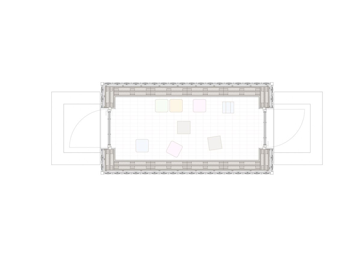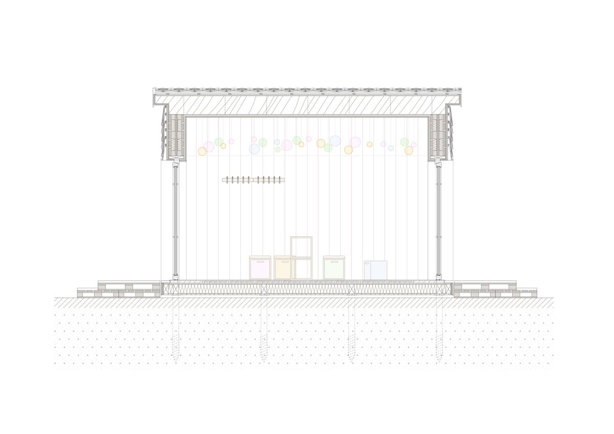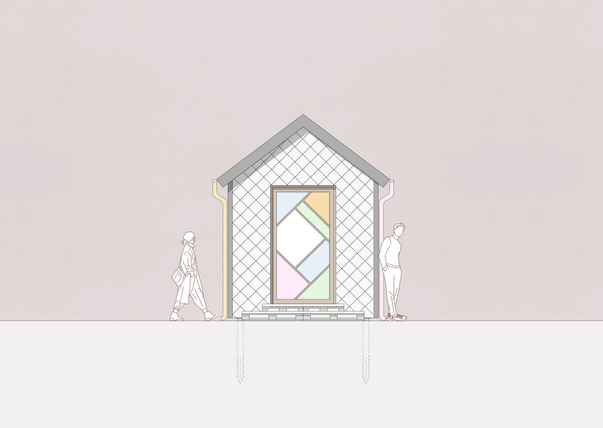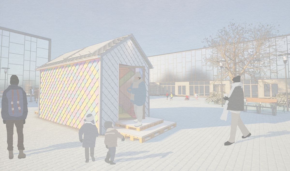 Bevölkerungsgruppen eine Belastung darstellen. Der Pavillon schafft einen Rückzugsort im Stadtraum, der Schutz vor Witterung bietet und zugleich Begegnung ermöglicht. Architektur wird dabei als soziale Infrastruktur verstanden, die Aufenthaltsqualität schafft und öffentliche Räume auch in der kalten Jahreszeit nutzbar macht.